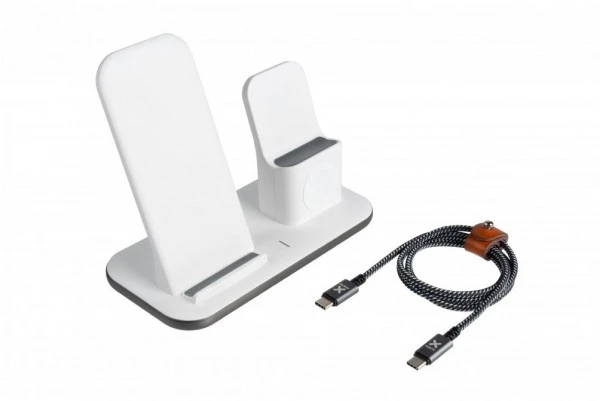 Ein Ort zum einfachen Aufladen aller Deiner Apple-Geräte. Das ist es, was die Xtorm 3-in-1 Wireless Ladestation erreichen soll. Sie verfügt über eine Ladestation zum kabellosen Aufladen Deines iPhones, einen Platz zum Ablegen und Aufladen Deiner Apple Watch sowie einen Platz zum Aufladen Deiner kabellosen AirPods (Pro)-Hülle.